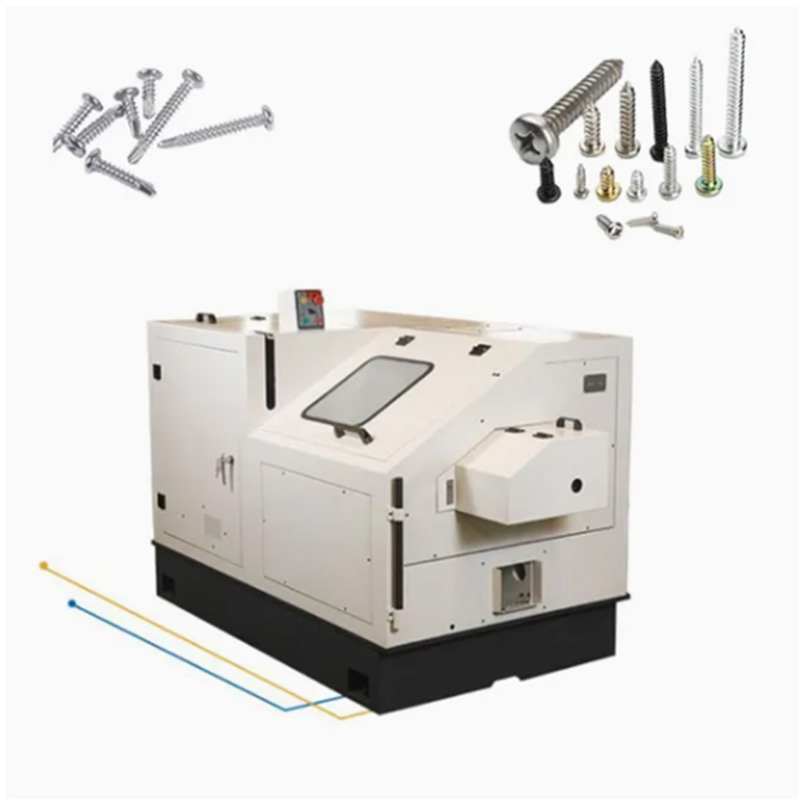 Procesul de producție al șuruburilor de către mașina de fabricare a șuruburilor automate implică următorii pași: sistemul de alimentare poate transporta automat firul metalic în mașină. Sistemul de formare va prelucra firul în funcție de parametrii prestabili pentru a -l modela în capul unui șurub, cum ar fi capul rotund, capul de contur sau capul cupolei, etc. Sistemul de procesare a firului va prelucra firele de pe arborele șurubului. Acest proces poate fi realizat prin metode precum filetarea sau rularea. Sistemul de inspecție va efectua verificări la dimensiunile și aspectul șuruburilor produse, iar cele care nu îndeplinesc standardele vor fi eliminate automat. Sistemul de control este ca creierul mașinii, capabil să controleze parametrii, cum ar fi viteza și precizia întregului proces de producție.