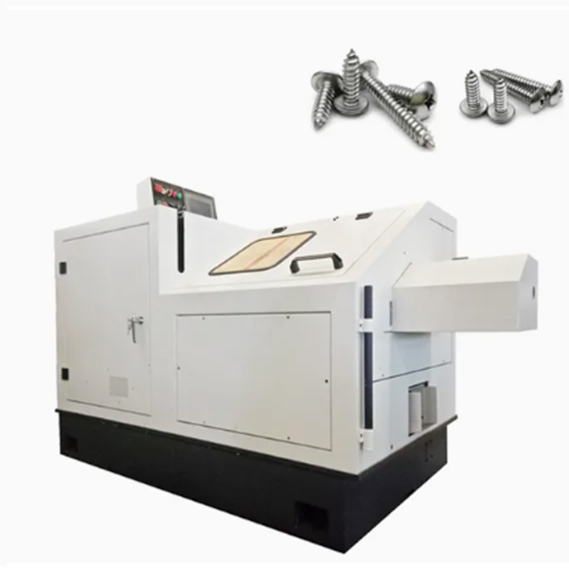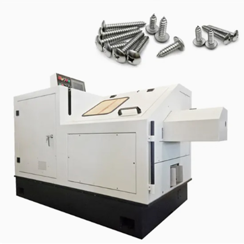 Mașina automată de fabricare a șuruburilor din lemn este proiectată special pentru producerea de șuruburi din lemn. Introduceți firul în mașină, tăiați -l la lungimea necesară, apoi apăsați capul șurubului, apoi modelați firul gros adecvat pentru lemn și creați în sfârșit un vârf ascuțit.