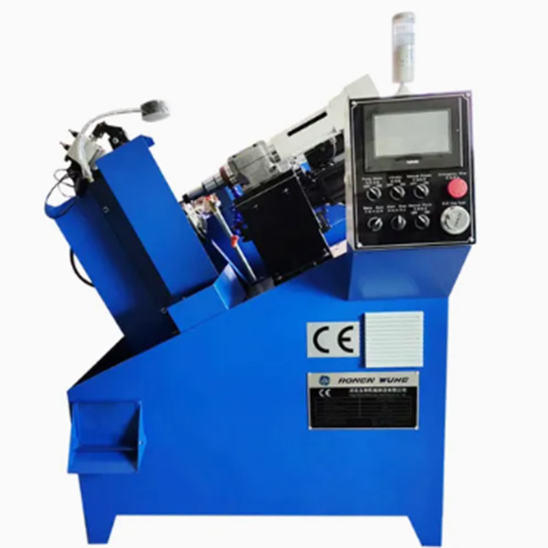 Mașina electrică de filetare a piulițelor este utilizată pentru a tăia filete interne în găurile pre-forate ale piulițelor. Este echipat cu un robinet rotativ (uneltă de tăiere) și îl introduce precis prin orificiul piuliței. Această mașină poate finaliza automat procesul de filetare a piulițelor producătoare de masă, formând filetele interne necesare împerecherii cu șuruburi sau șuruburi. Aceasta înlocuiește procesul de atingere manuală mai lent și mai puțin consistent.