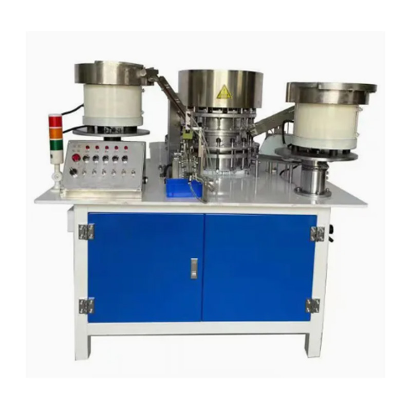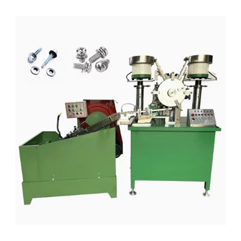 Mașina de asamblare a șuruburilor cu șurub cu autoforare are capabilități de funcționare complet automate și poate finaliza procesele de bază de alimentare precisă cu șurub, alimentare precisă a șaibei și poziționarea șaibei sub capul șurubului în secvență, fără a fi nevoie de intervenția umană în etapele cheie de asamblare. Șuruburile și șaibe sunt introduse, respectiv, în două buncăre, apoi sortate și aliniate de mașină, iar în cele din urmă șaibe sunt puse cu precizie pe arborii șuruburilor. În cele din urmă, aparatul le livrează cu grijă.